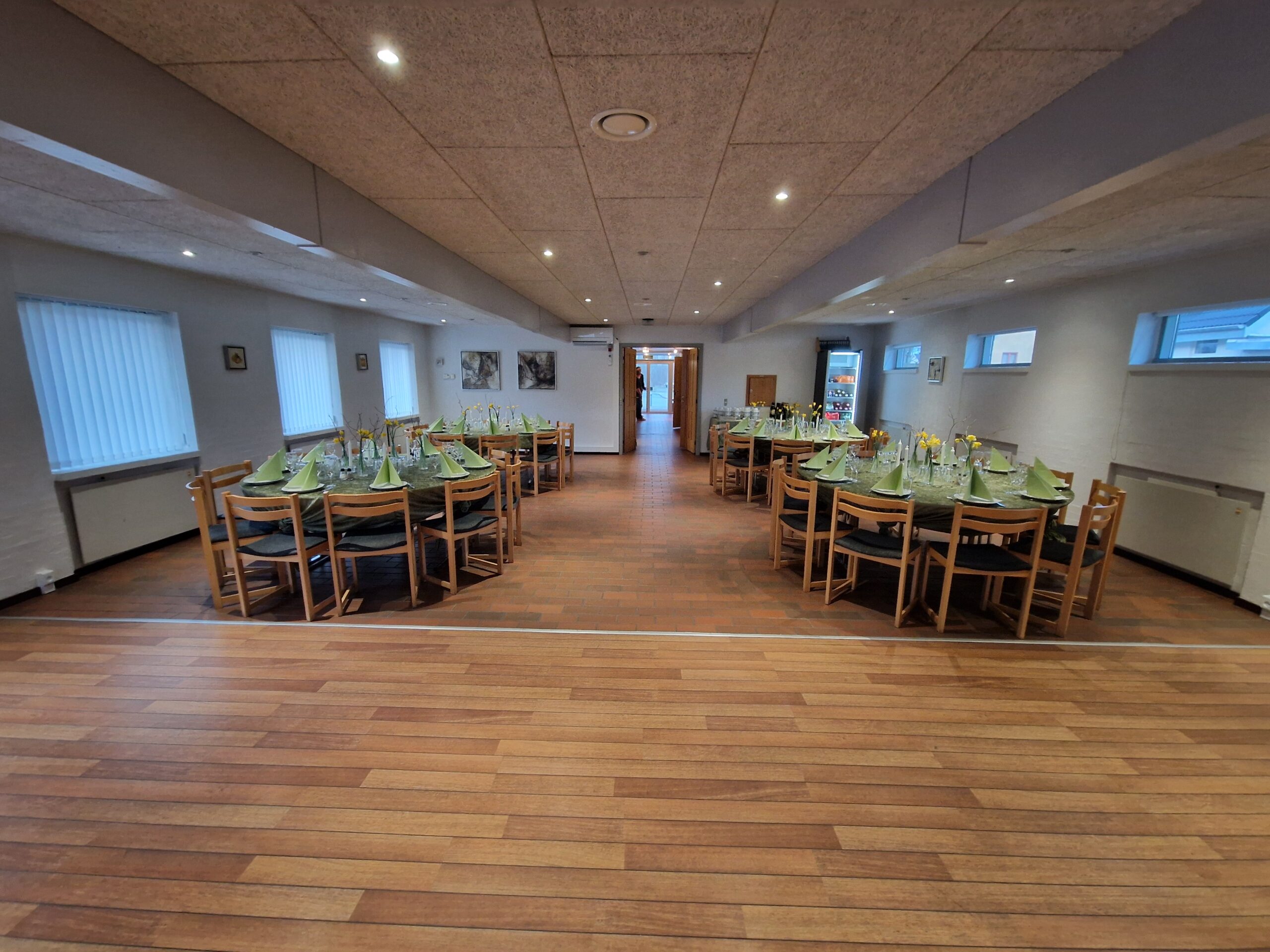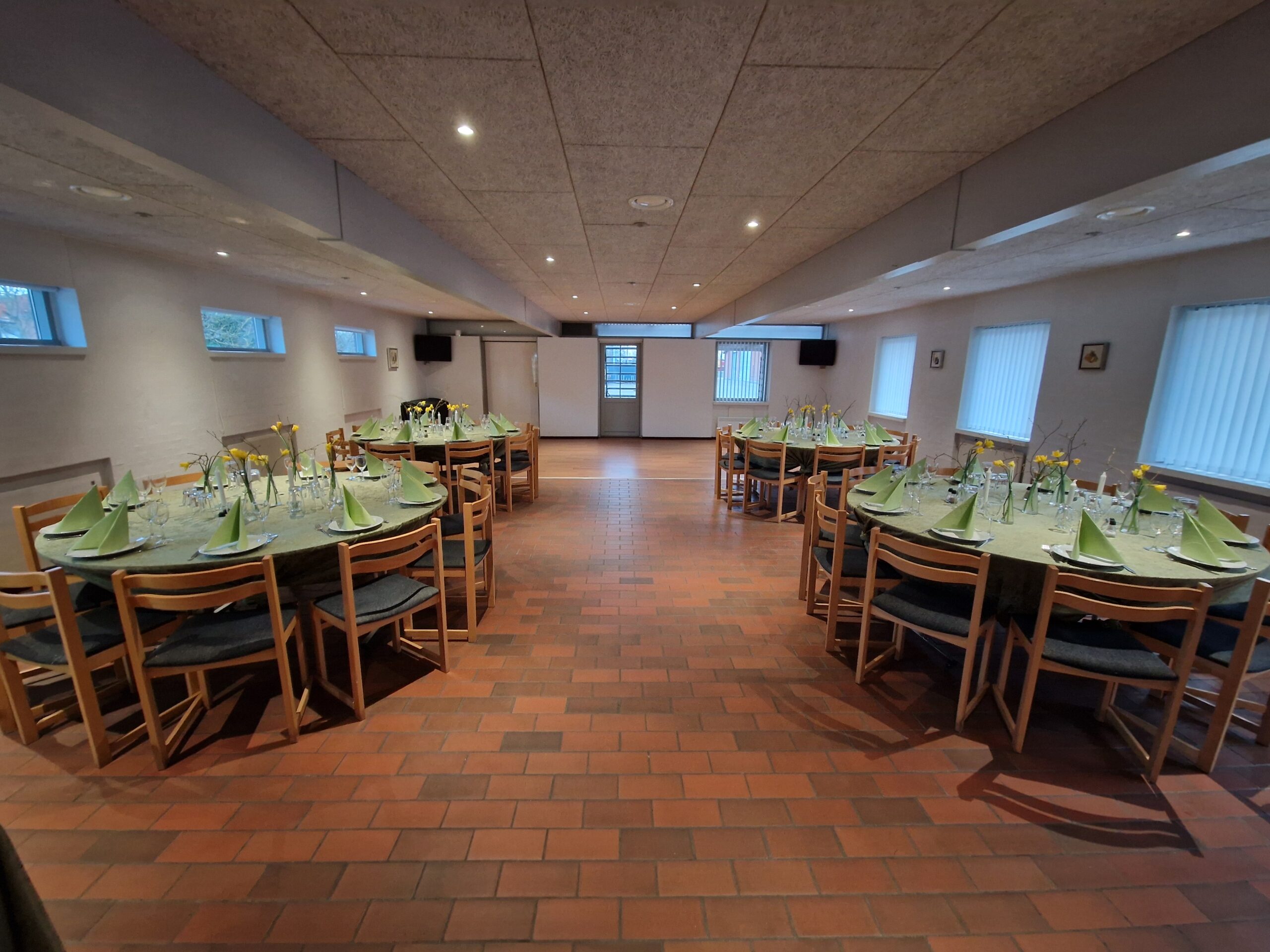 Du kan booke medborgerhusets store sal med køkken herunder. Hvis du kun ønsker at booke 1. salen med, så kan du gøre det her.